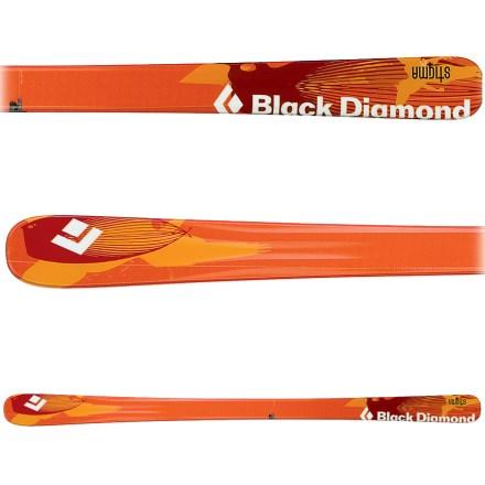 The black diamond stigma skis are an all mountain ski with a lightweight dual torsion bow construction and flexible cnc hybrid wood core that will send you soaring free and have people singing your praises.